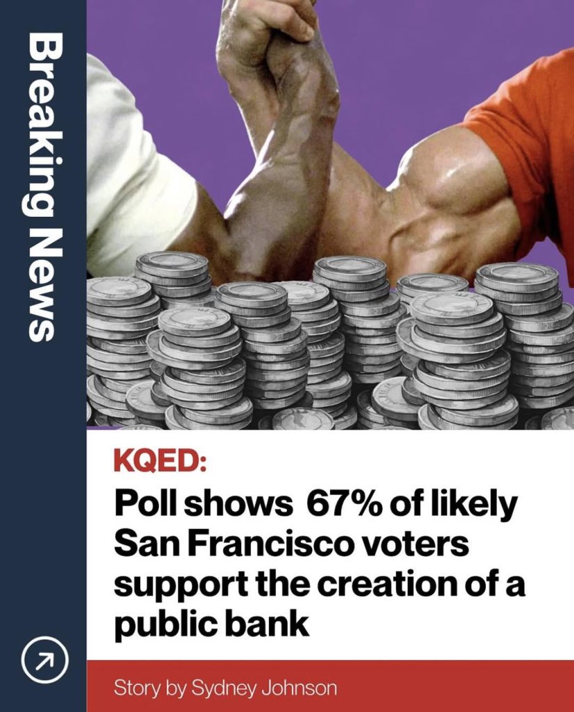 Breaking SF Public Bank: New Poll Shows 2 in 3 likely SF voters support starting a San Francisco Public Bank!